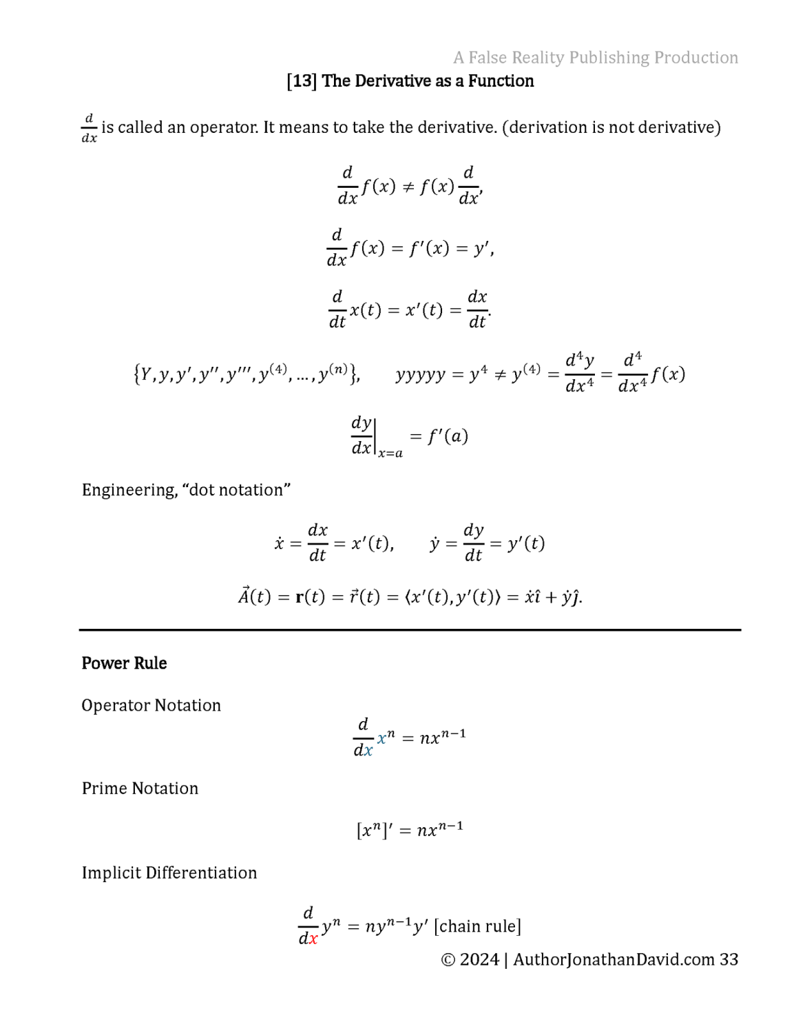 The Derivative as a Function – Understanding the operator notation and engineering dot notation